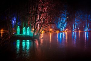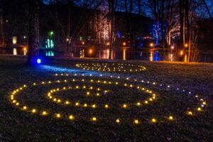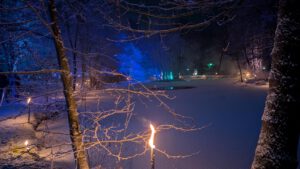 Der Magische Feuerweg enthüllt den ganz eigenen Zauber der ZwischenZeit: Folge dem licht-verwandelten Pfad rund um den idyllischen See. Hier Licht spendendes Feuer, da eine traumhafte Insel, dort der Schein des Künftigen & Vergangenen …